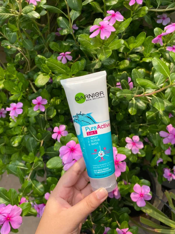 3 In 1 Garnier Skin Natural Pure Active Wash + Scrub + Mask 100ml